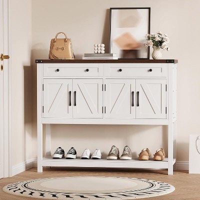 47.2" Modern Farmhouse Buffet Sideboard with 2 Drawers, 4 Sliding Barn Doors, Open Shelf Storage, Wooden Cabinet for Kitchen, Dining Room