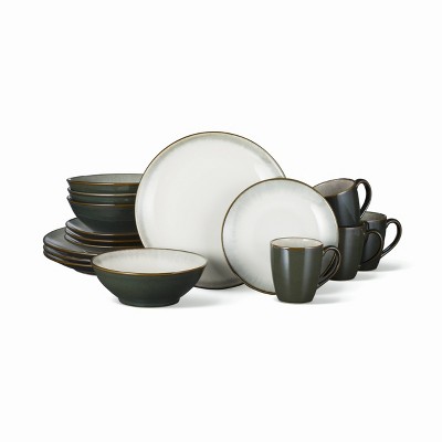 16pc Stoneware Novelle Dinnerware Set Moss Green - Sango: Microwave & Dishwasher Safe, Service for 4, Solid Pattern