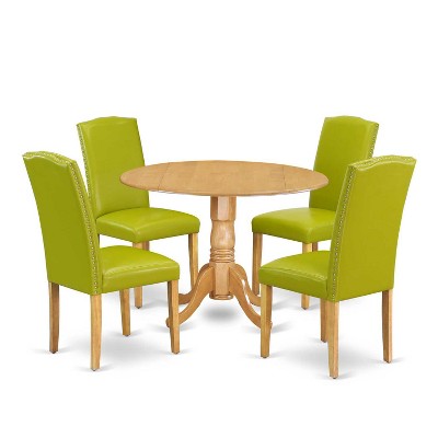 Round Kitchen Table Set 5pc 42" Table w/ Drop Leaves & 4 Parsons Chairs - Autumn Green