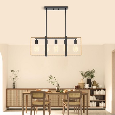 Farmhouse Modern Chandelier, 5-Light Adjustable Dining Room Lighting, Black Linear Light Fixture for Kitchen Island & Dining Table