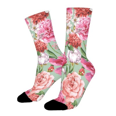 Classical Vintage Floral Rose Women Printed Crew Socks Funny Funky Socks Soft Polyester Novelty Gifts for Artists Men