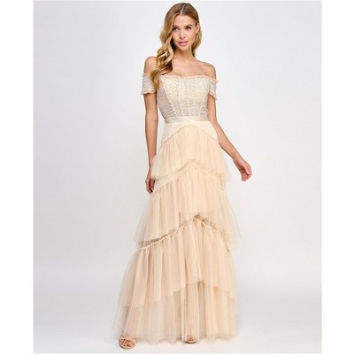 City Studio Womens Off the Shoulder Gown Dress