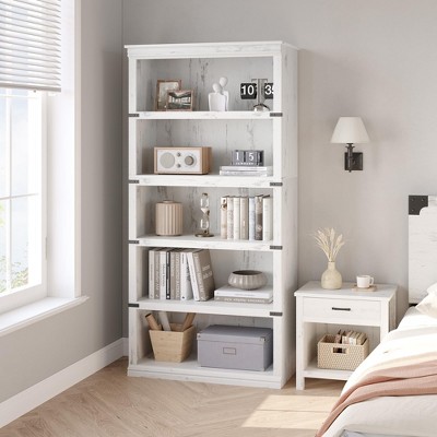 - white wall bookshelves