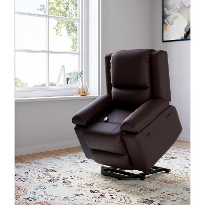 - brown faux leather sofa