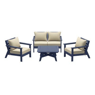 HAPPATIO Patio Outdoor Furniture Set,4 Piece Aluminum Patio Conversation Set with Coffee Table, Armchairs and Loveseat for Backyard Deck Poolside