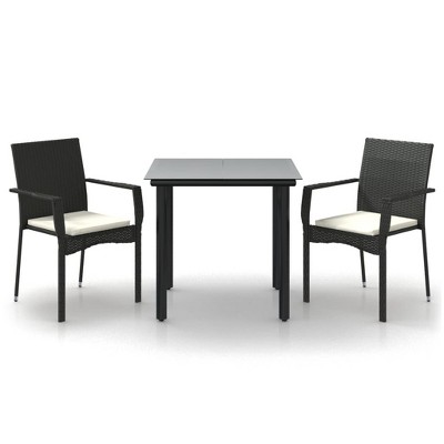 vidaXL 5 Piece Black Poly Rattan Patio Dining Set with Cushions and Glass Table - Garden/Deck/Backyard Lounger