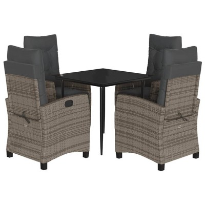 vidaXL 5 Piece Gray Poly Rattan Patio Dining Set - Garden/Backyard/Deck Furniture with Cushions & Adjustable Reclining Chairs