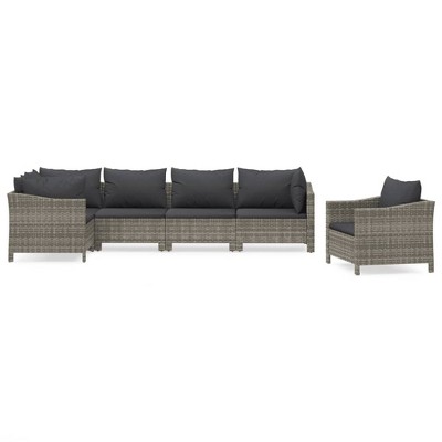 vidaXL 6 Piece Patio Lounge Set with Cushions Gray Poly Rattan