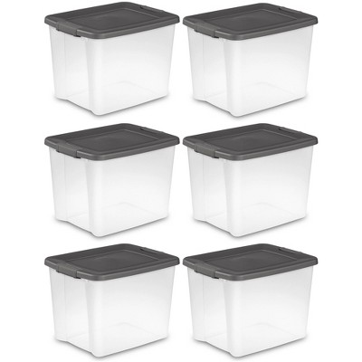 Sterilite 30 Qt Clear Plastic Stackable Storage Bin with Grey Latch Lid, 6 Pack