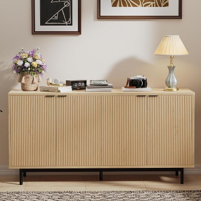 Dyonery 58 Inch Fluted Buffet Cabinet with Shelves & 4 Doors, Modern Storage Sideboard for Dining Room Living Room, Space Saving Organizer,Black
