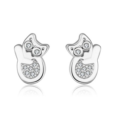 Cat Kitten Earrings for Women Sterling Silver Clear CZ Ginger Lyne Collection