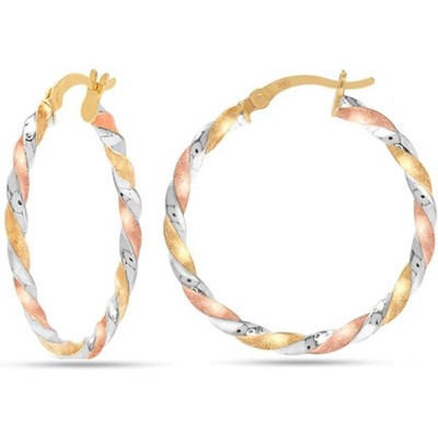 SmallRig 925 Silver & Gold Plated Hoop Earrings, Three-Tone Twisted Lightweight Click-Top Design