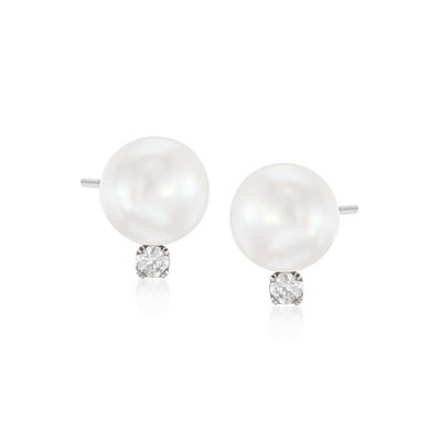 EVERLY JEWELRY | Sterling Silver 2 5/8 CT TGW Created White Sapphire And 8 - 8.5 MM White Freshwater Cultured Pearl Fashion Post Earrings