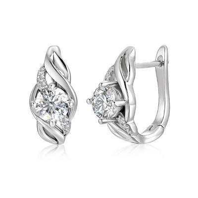 Guili White Gold Plated Lab-Created Moissanite Drop Solitaire Hoop Earrings Ð Elegant and Timeless Jewelry for Any Occasion