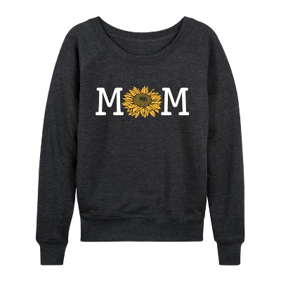 Women's - Instant Message - Mom Colorful Sunflower Lightweight French Terry Wide Neck Long Sleeve Graphic Shirt