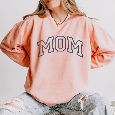 Simply Sage Market Embroidered Mom Varsity Outline Lightweight Garment Dyed Sweatshirt