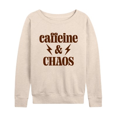Women's - Instant Message - Chaos Caffeine Mom Lightweight French Terry Wide Neck Long Sleeve Graphic Shirt
