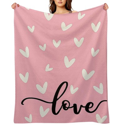 Lomsoe Red and White Heart Pattern theme Flannel Blanket, All Seasons Use, Ultra Soft and Warm for Outdoor Bedroom, Valentine's Day Gift.
