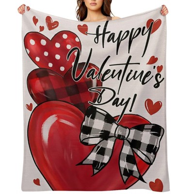 Valentine's Day Throw Blanket - Red Heart Plaid Bow Happy, Ultra Soft Anti-Pilling for Camping & Gifting 50x60 inches