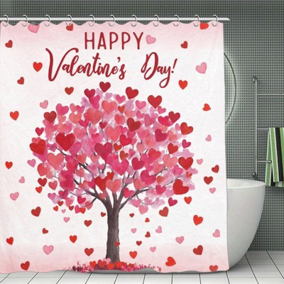 Valentine's Day Heart Tree "Happy Valentine's Day" Shower Curtain - High-Density Polyester, Waterproof, Bathroom Decor 70.8x70.8Inch
