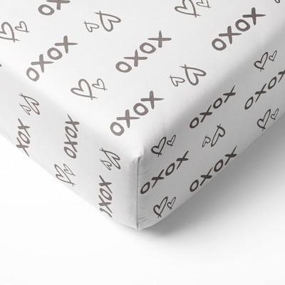 Bacati - Gray Kisses N Hugs Print 100 percent Cotton Universal Baby US Standard Crib or Toddler Bed Fitted Sheet