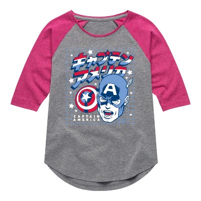 Girls' - Marvel - Captain America Katakana Shirt Tail Raglan Graphic T-shirt
