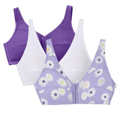 Comfort Choice 3-Pack Front-Close Cotton Wireless Bra