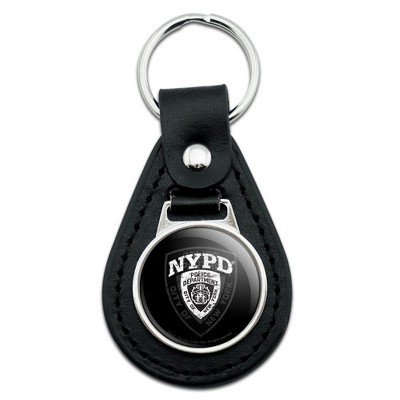 Nypd B&W Shield Black Leather Keychain