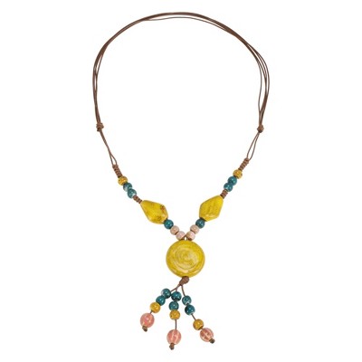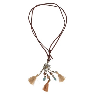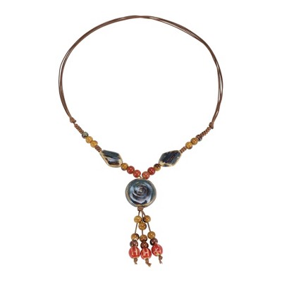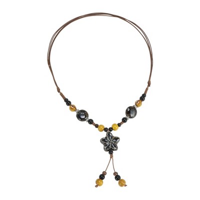 Unique Bargains Versatile Long Pendant Bohemian Necklace 12.2" to 15.7" Brown 1 Pc