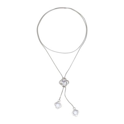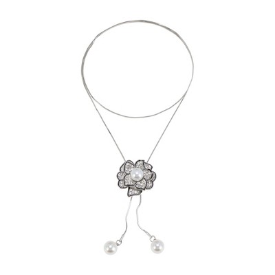 Unique Bargains Simple Pendant Rose Sweater Necklace 31.89" Silver Tone 1 Pc