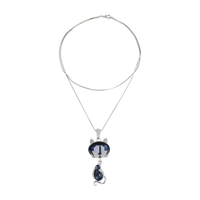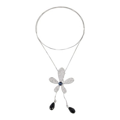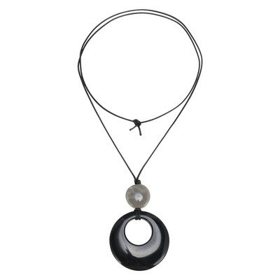 Unique Bargains Simple Pendant Sweater Necklace 31.89" Black White Silver Tone 1 Pc