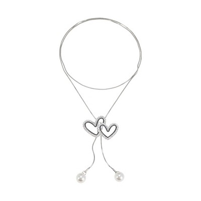 Unique Bargains Simple Pendant Double Rings Sweater Necklace 31.89" Silver Tone 1 Pc