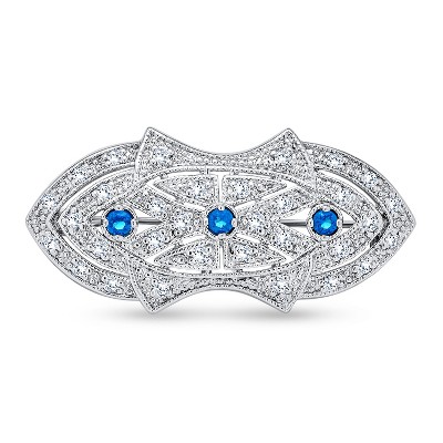 Bling Jewelry Art Deco Style Lapel Scarf Brooch Pin with Blue CZ Cubic Zirconia Silver Plated