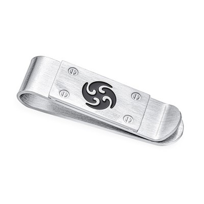 Bling Jewelry Black Whirling Symbol Blade Ninja Star Money Clip Credit Card Stainless Steel