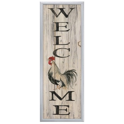 6" x 18" Rooster Welcome Framed Wall Art, Contemporary Home Decor, Glass Facing and Hanging Hardware