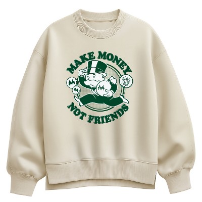 Women's - Monopoly - Make Money Not Friends Oversized Fleece Crew Sweatshirt