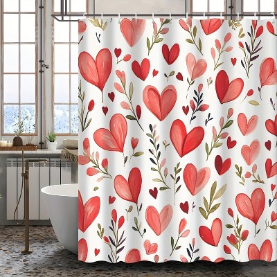 Nertpow 1PC Valentine'S Day Cute Heart Shower Curtain, Red Pink Love Pattern Polyester Fabric, Bathroom Decor with Hook, Machine Washable.