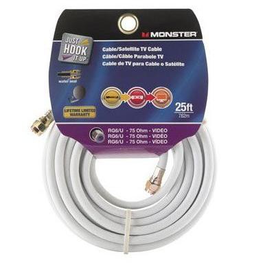 Monster 140044-00 RG6 Video Coaxial Cable, 25', White