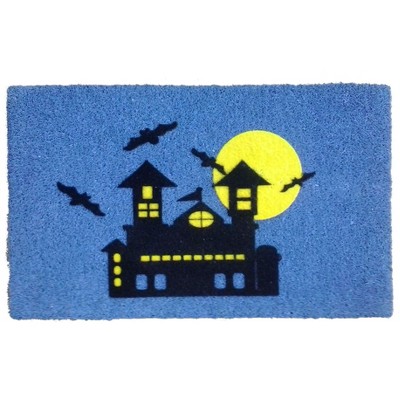HomeRoots 18" X 30" Blue and Black Coir Outdoor Halloween Door Mat