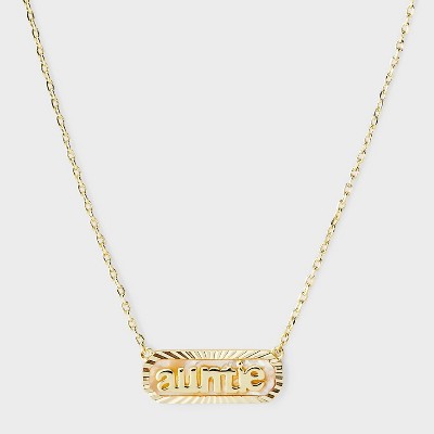 14k Gold Dipped Mother Of Pearl "Auntie" Bar Necklace - A New Day™ Gold