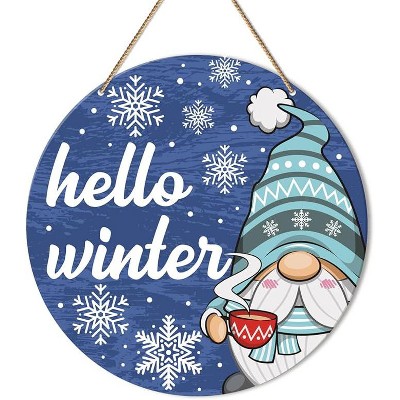 Lomsoe Christmas Wooden Hanging Decor Hello Winter Door Sign Christmas Wooden Farmhouse Wall Front Door Hanger Christmas Sign Christmas Gift