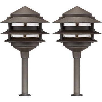 John Timberland Three-Tier Pagoda 11" High Modern Outdoor Landscape Path Light Porch House Exterior LED Bulb Weatherproof Brown Bronze Finish Aluminum