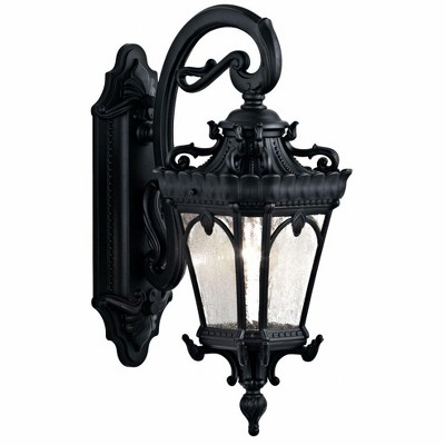John Timberland Bellagio Vintage Rustic Outdoor Wall Light Fixture Texturized Black Upbridge 16 1/2" Clear Hammered Glass for Post Exterior Barn Deck