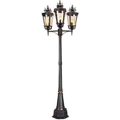 John Timberland Mediterranean Outdoor Post Light Street Lantern 3 Light Veranda Bronze 100" Clear Hammered Glass for Exterior Yard