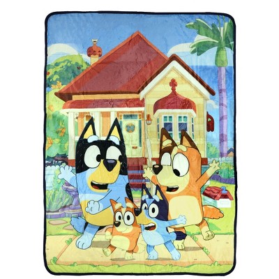 Bluey Blanket Happy Dancing Double Sided Silk Touch and Faux Wool Throw 60" X 80" Multicolored