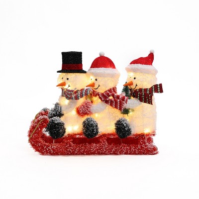 LuxenHome Snowman Family Trio on Sled with Lights Outdoor Holiday Decoration Multi-Color