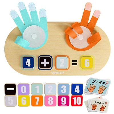 Etokfoks Montessori Math Toy 12 Wooden Number Blocks 10 Double Sided Flashcards 2 Felt Palms 1 Board 1 Storage Box for Kids 3 4 5