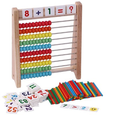Etokfoks Wooden Abacus Math Toy 1 Set with 100 Counting Sticks and 110 Math Cards Educational Counting Tool for Preschool and Elementary Kids
