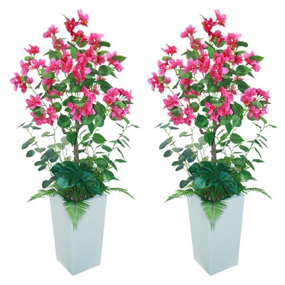 2Pack Artificial Bougainvillea Tree with Flowers, 4FT Faux Plants in Potted Indoor Bougainvillea Plant, Blooming Topiary Tree Lifelike Faux Plants