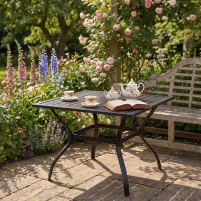 - black metal outdoor dining table
